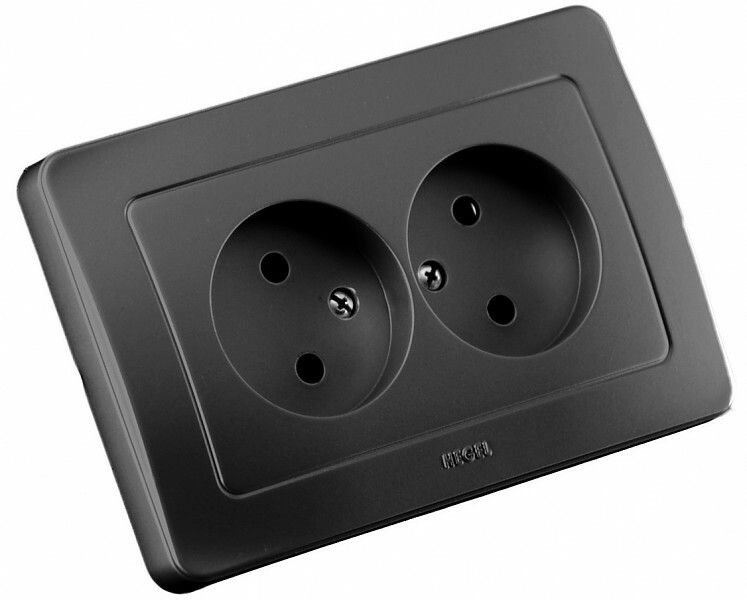 Розетка скрытой установки РС16-341-08 HEGEL - это двухместная розетка, предназначенная для подключения электроприборов к силовой электрической сети. Она имеет черный цвет и изготовлена из пластика.