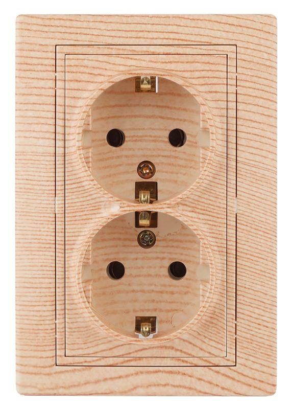 Розетка однофазная двойная скрытого монтажа, в рамку с заземлением без шторок сосна 16А 250В IP20 1-205-11 Intro Plano - Б0053922 ЭРА