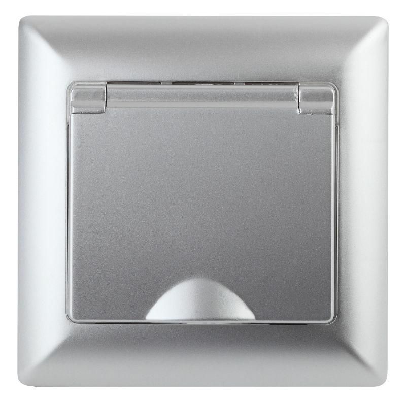 Розетка СП Solo 4-203-03 16А 250В 2P+E Schuko с крышкой алюм. Intro Б0043321 ЭРА