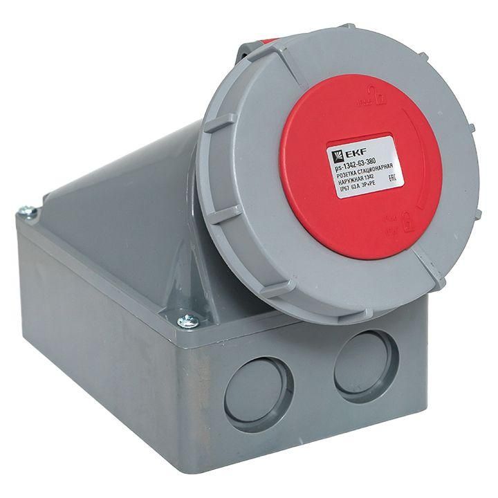 Розетка стационарная наружная 1342 3Р+РЕ 63А 380В IP67 EKF PROxima | ps-1342-63-380