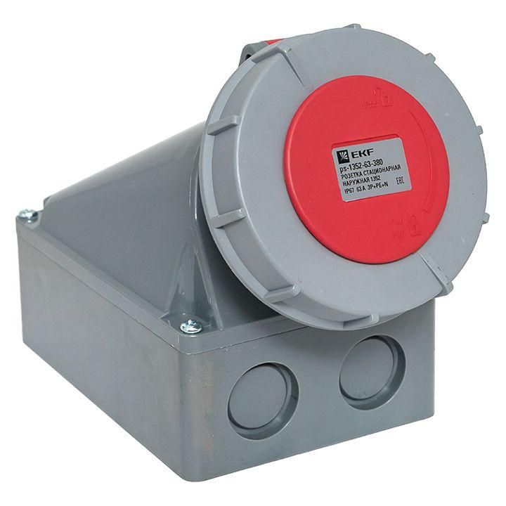 Розетка стационарная наружная 1352 3Р+РЕ+N 63А 380В IP67 EKF PROxima | ps-1352-63-380