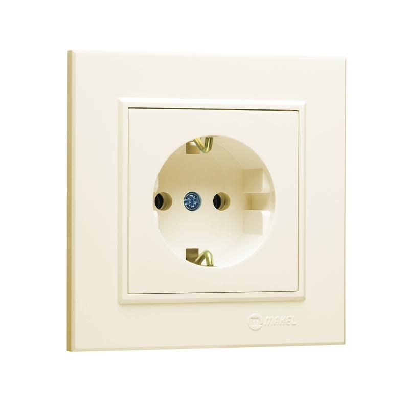 Розетка штепсельная с заземлением 16А IP20 кремовая от бренда Makel, артикул 56010008, предназначена для надёжного подключения бытовых и профессиональных устройств в помещениях с нормальной влажностью. Она совмещает безопасную работу с классическим дизайном и соответствует требованиям европейского стандарта SCHUKO.