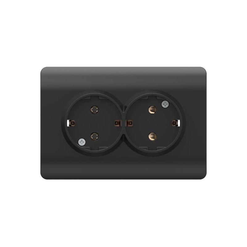 Розетка с заземлением и защитными шторками двойная, 16А, черная от бренда CHINT, артикул 431491 из серии NEW3-E - надёжное решение для скрытой проводки в жилых и офисных помещениях, где важна безопасность детей и соответствие нормам электромонтажа.