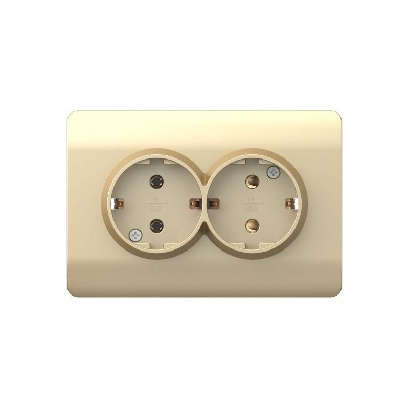 Розетка с/з со шторками двойная, 16А, шампань(NEW3-E) | 431418 CHINT