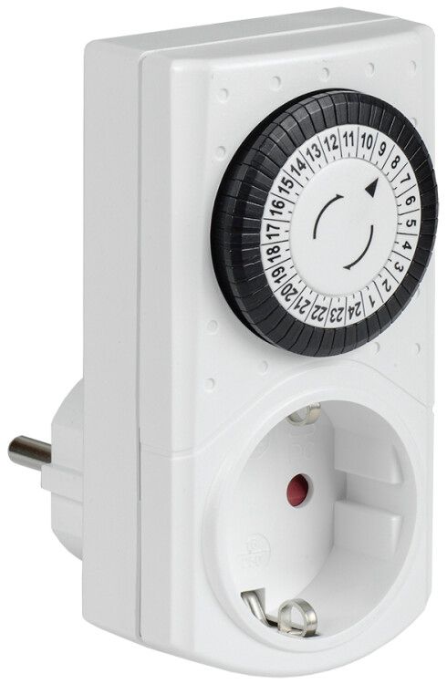 Розетка-таймер механический РТМ-1 имеет встроенную вилку и выходную розетку типа SCHUKO с заземляющим контактом. Подключается прямо в стенную розетку - никаких проводов, клемм или сложного монтажа не требуется.