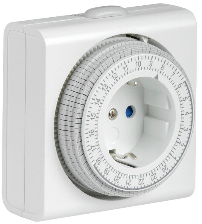 Розетка-таймер механический РТМ-3 16 А от IEK позволяет автоматически включать и отключать устройства по расписанию на срок от 15 минут до 24 часов. Устройство устанавливается прямо в обычную розетку, не требует внешнего питания и подойдет для бытовых и легких промышленных задач.