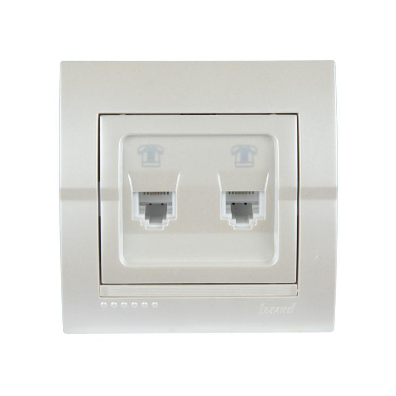 Розетка телефонная 2-м СП Deriy RJ11 жемчуж./бел. метал. LEZARD 702-3030-138