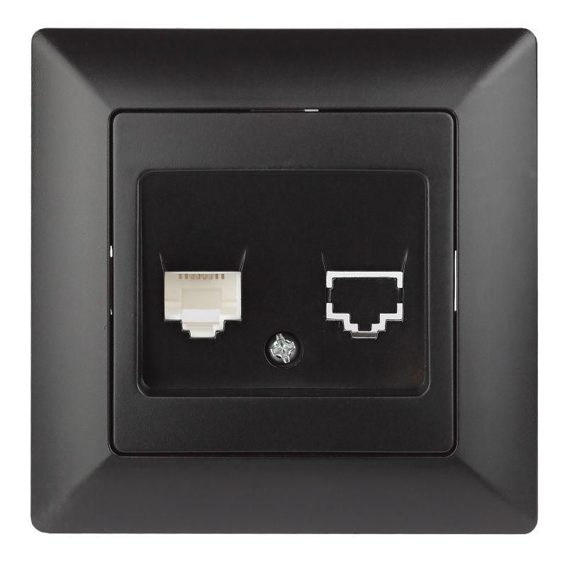 Розетка телефонная RJ11, СУ, антрацит предназначена для подключения телефонных аппаратов, факсов, модемов и других устройств, использующих аналоговые линии связи через разъём RJ11. Устанавливается в стены с предварительно подготовленными нишами - идеально для жилых домов, офисов, гостиниц и административных зданий. Применяется там, где требуется чистый внешний вид без наружных кабельных каналов.