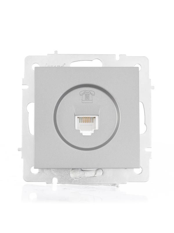Розетка телефонная евро стандарт механизм платина от бренда LEZARD, артикул 742-3588-137, предназначена для подключения телефонных устройств в скрытых системах проводки. Отличается надёжным прокалывающим соединением и экранированным контактом для снижения помех.