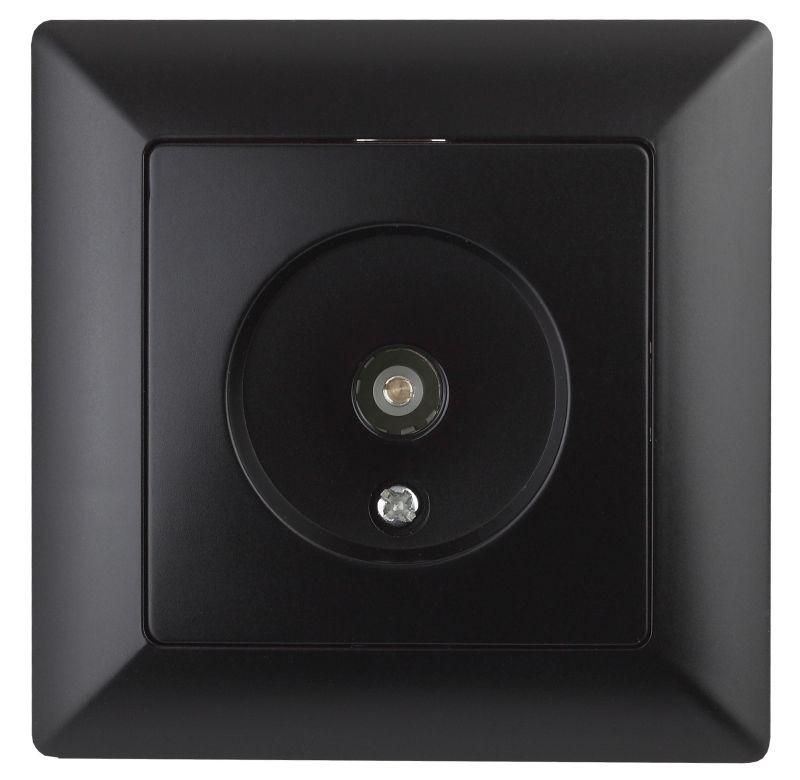 Розетка телевизионная одиночная TV с У, Solo, антрацит, 4-301-05 используется для подключения коаксиального кабеля от антенного входа к телевизору, приставке или модему. Подходит для жилых помещений, офисов, гостиниц - там, где требуется чистый и стабильный сигнал от центральной антенны или спутникового ресивера. Применяется исключительно в системах с распределением сигнала по схеме «звезда» - когда каждый приёмник получает сигнал напрямую от центрального узла, без делителей.