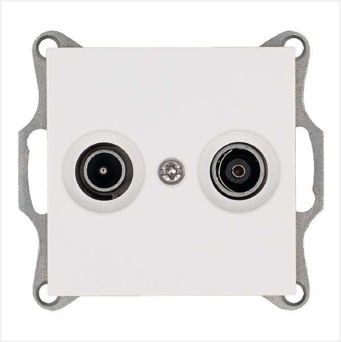 Розетка TV+FM используется для подключения коаксиальных кабелей от антенны к телевизору и FM-приёмнику. Подходит для установки в жилых помещениях - квартирах, домах, офисах - где требуется организовать точку подключения спутниковой, эфирной или городской антенны. Механизм рассчитан на одновременную работу двух устройств: одного телевизора и одного радиоприёмника через один входной кабель.