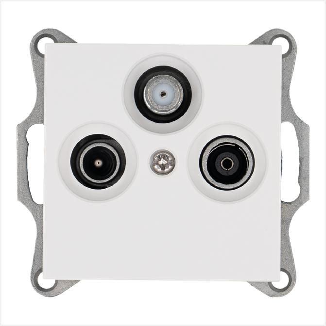 Розетка телевизионная оконечная TV + FM SAT 3-м Ф9.5мм механизм бел. глянцевый Jasmart G6206W