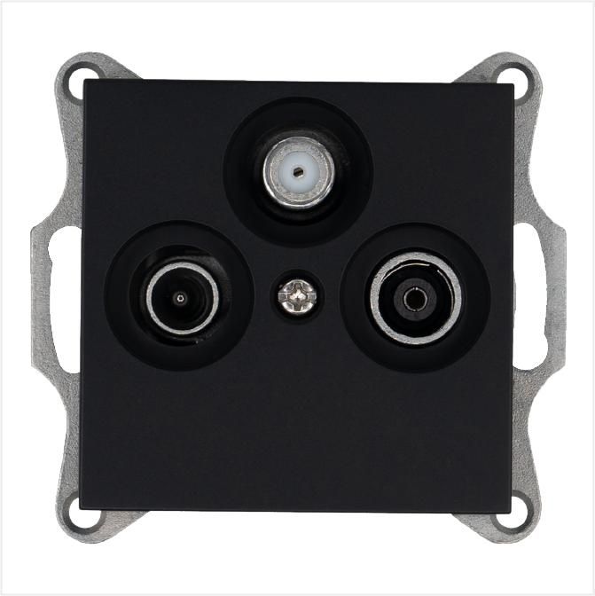 Розетка телевизионная оконечная TV + FM SAT 3-м Ф9.5мм механизм черн. матов. soft touch Jasmart G6206PB