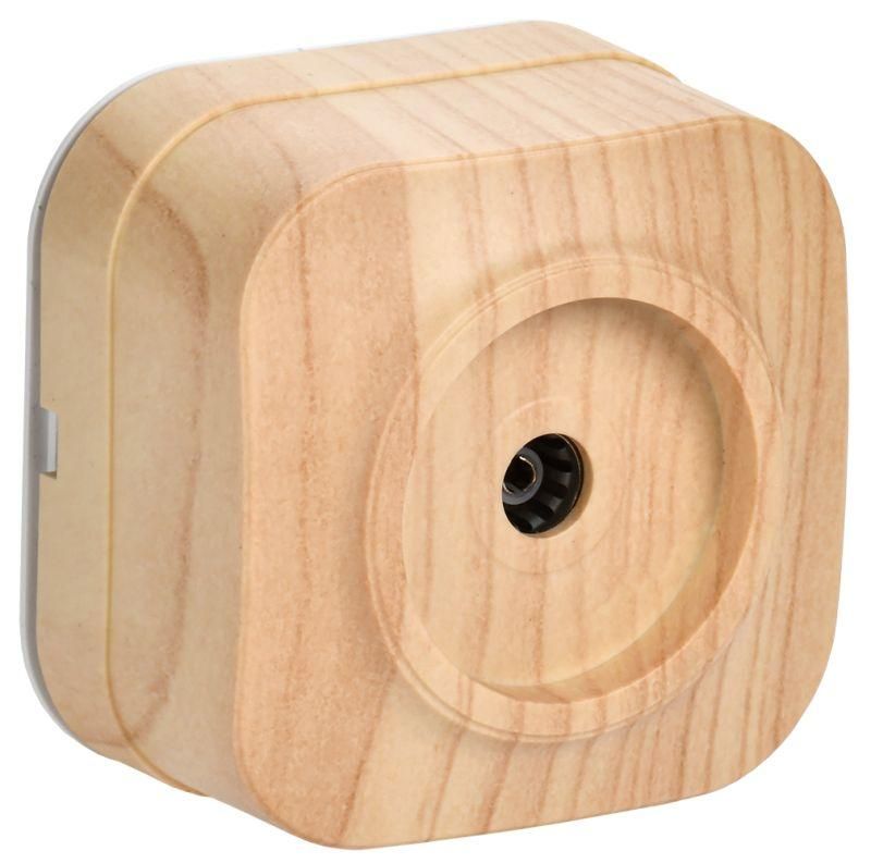 Розетка телевизионная одноместная наружная сосна от IEK (ИЭК), артикул eah10-k34, предназначена для подключения антенн и спутниковых приемников на открытой поверхности - например, на фасаде дома или в зоне террасы. Принадлежит к серии GLORY и сочетает функциональность с натуральным декоративным оформлением.