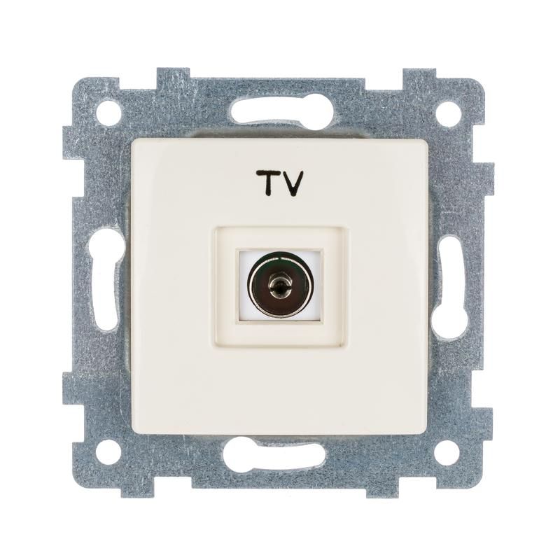 Механизм розетки телевизионной скрытой установки РТВ1-457, слоновая кость от Кунцево-Электро - компактный элемент для внутренней установки в стену, предназначенный для подключения телевизионного кабеля. Артикул 120005 входит в серию Мария и подходит для скрытых монтажных коробок стандартного типа.