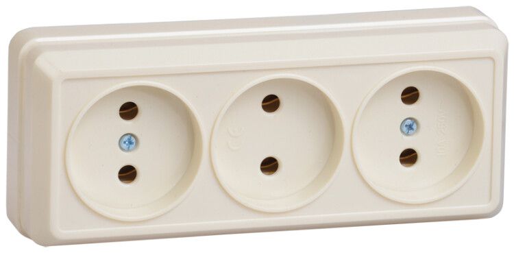Розетка тройная без заземления 10А открытого монтажа кремовая предназначена для подключения однопостовых бытовых устройств мощностью до 2,5 кВт - таких как зарядные устройства, светильники, телевизоры, увлажнители воздуха и другие приборы с двухконтактной вилкой. Подходит для установки в жилых комнатах, офисах, кладовых и других сухих помещениях. Не применяется для оборудования с металлическим корпусом, требующим заземления - например, стиральных машин, холодильников или электроинструментов.