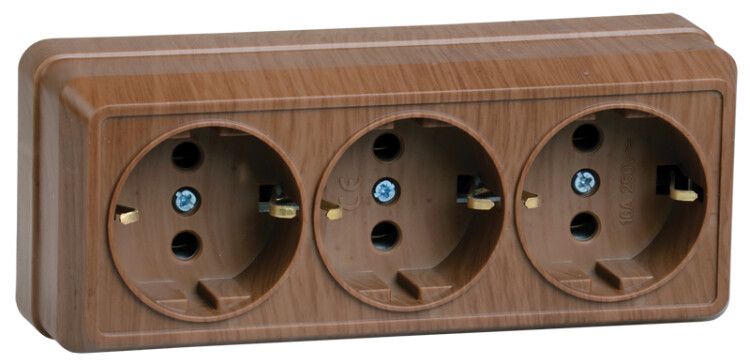Розетка РС23-3-ОД трехместная с заземляющим контактом 16А открытая установка Октава дуб - ERO31-K04-16-DC IEK