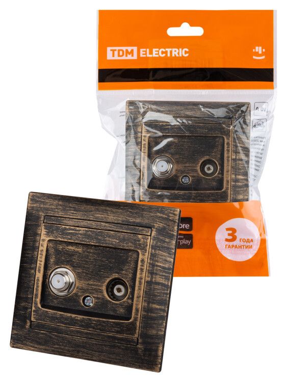 Розетка TV ("мама") + SAT (F-разъем) 0-2400МГц старинная бронза "Лама" | SQ1815-0761 TDM