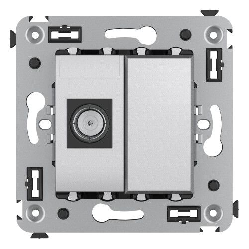 - Двухмодульная конструкция упрощает группировку с другими розетками (USB, Ethernet, силовая) в одной рамке.