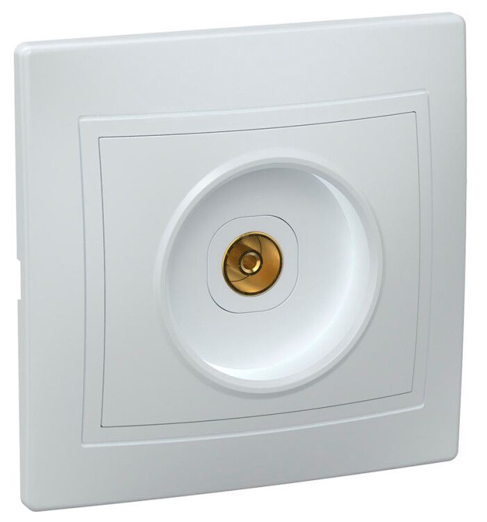 Розетка телевизионная 1-местная белая РТВ10-КБ IP20 от IEK (ИЭК) - оконечное устройство для подключения телевизора или спутникового ресивера к коаксиальному кабелю в жилых и офисных помещениях. Артикул eak10-k01-dm относится к серии KVARTA и рассчитана на долгую эксплуатацию в условиях внутренней проводки.