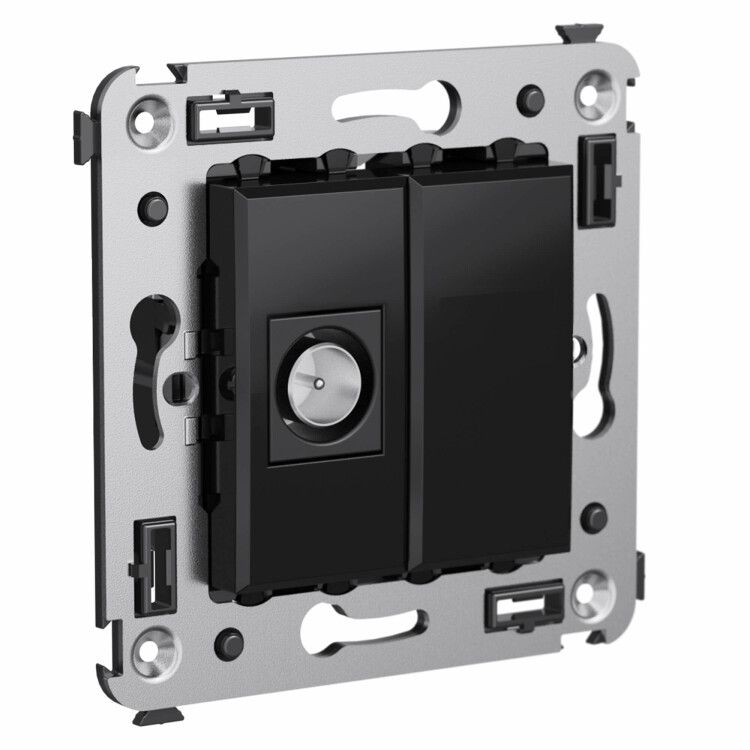 Розетка телевизионная одиночная в стену, оконечная, черный квадрат используется для завершения телевизионной сети - то есть когда сигнал проходит через несколько точек, а эта розетка является последней. Подключается один коаксиальный кабель (например, RG-6 или аналогичный) напрямую к телевизору, приставке или маршрутизатору. Устройство подходит для квартир, коттеджей, гостиниц, офисов и других помещений, где требуется чистый и надёжный сигнал ТВ/цифрового эфира.