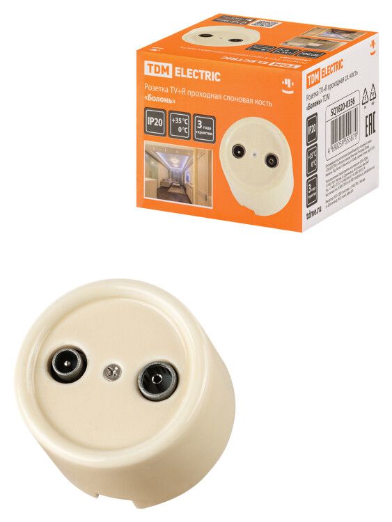 Розетка TV+R проходная сл. кость «Болонь» SQ1820-0356 TDM ELECTRIC - это электрическая розетка, предназначенная для управления сетями освещения и подключения бытовых нагрузок к сети переменного тока. Она идеально дополняет интерьер в винтажном стиле и может быть использована в ресторанах, клубах, загородных коттеджах и дачах.