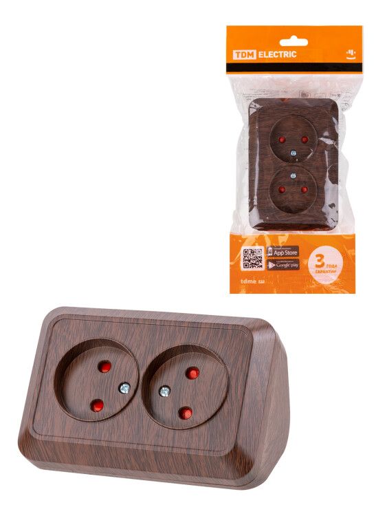 Розетка угловая двойная 2П открытой установки с з/ш IP20 250В 10А бук "Ладога" | SQ1801-0342 TDM