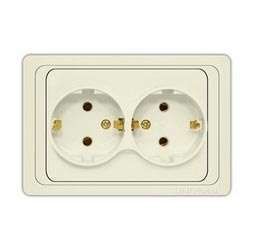 Розетка двухместная Валери с/з, скрытая, 16А, 220В, слоновая кость (ivory), (еврос - Б-В0128. Союз