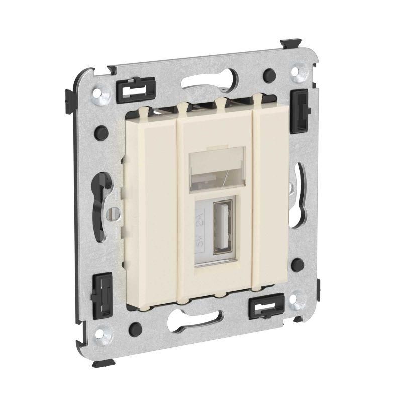 - Совмещает функции классической розетки и USB-портов в одном элементе