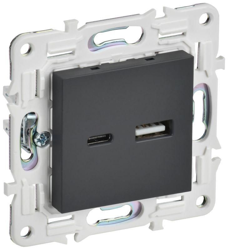 Розетка USB A+C 18Вт SKANDY SK-R13G графит IEK SK-U22-018-K53