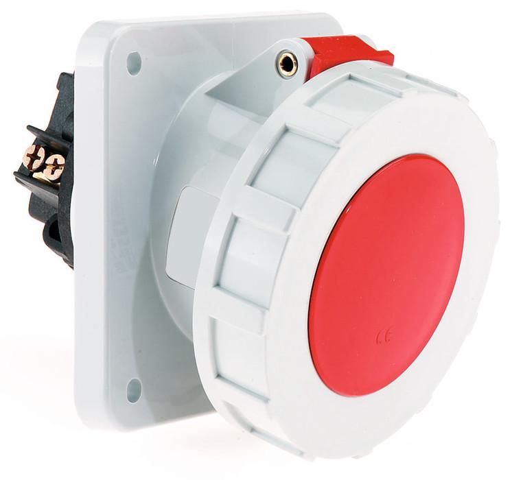 - Цвет: красный - визуально отличает розетку от бытовых аналогов, указывает на высокую мощность;