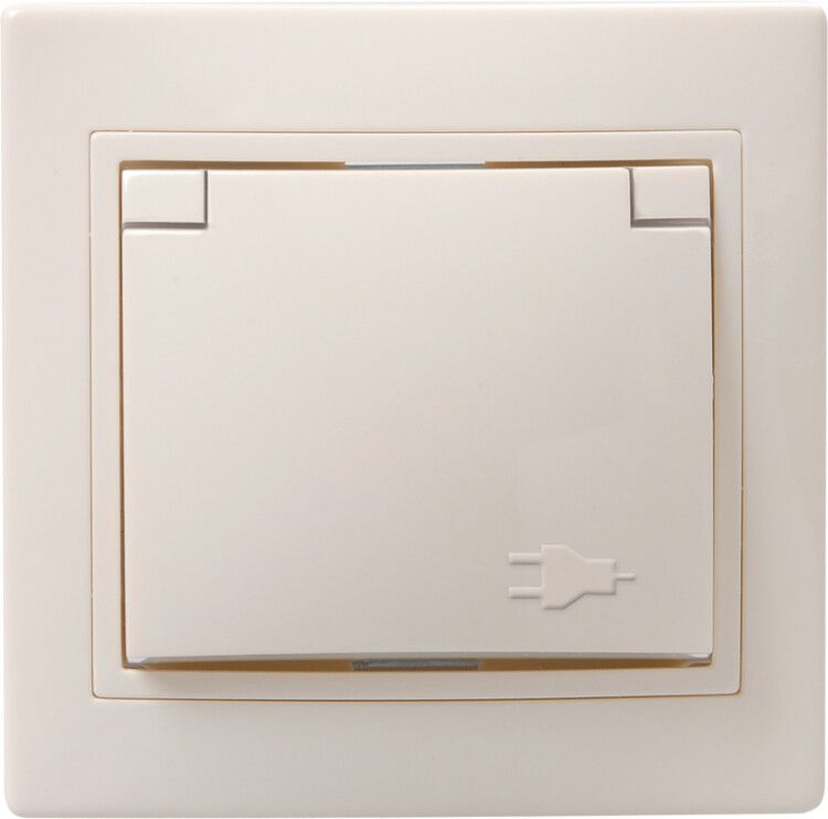 Розетка 1-м СП Кварта РСбш10-3-ККм 16А IP20 с заземл. защ. шторки крышкой крем. IEK ERK12-K33-16-DM