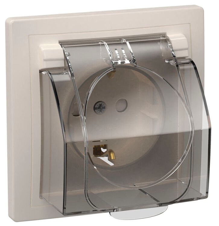 Изделие соответствует ГОСТ Р 51322.1 - основному нормативу для розеток в РФ. Защитные шторки исключают случайное попадание иголок, монет или других предметов в контакты. Выпуклый символ на лицевой стороне указывает на наличие заземления. Сертифицирована для работы в условиях повышенной влажности благодаря классу IP44.