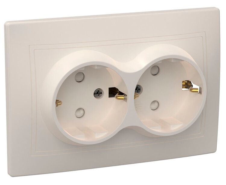 Розетка 2-местная с заземлением и защитными шторками 16А КВАРТА (ККм) кремовая предназначена для подключения одновременно двух устройств мощностью до 3,5 кВт (при 250 В и 16 А). Подходит для установки в жилых помещениях - квартирах, частных домах, а также в офисах, мастерских и других объектах с постоянным электроснабжением. Устройство обеспечивает безопасную работу с бытовой техникой, зарядными устройствами, переносками и маломощным оборудованием.
