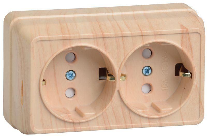 Розетка 2-м ОП Октава РСш22-3-ОС 16А IP20 с заземл. защ. шторки сосна IEK ERO24-K03-16-DC