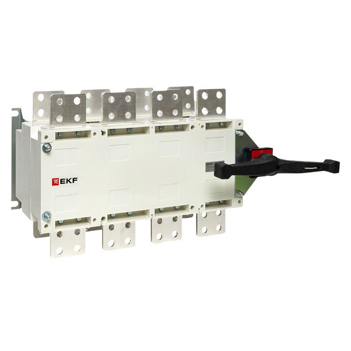 Рубильник-переключатель 4P 1600A 690В 70кА с рукояткой управления для прямой/поворотной установки от EKF - устройство для ручного отключения и включения трёхфазных цепей высокой мощности. Артикул PSCS-1600-4 рассчитан на работу в условиях повышенных токов короткого замыкания и предназначен для систем распределения электроэнергии, где требуется надёжное механическое разъединение.