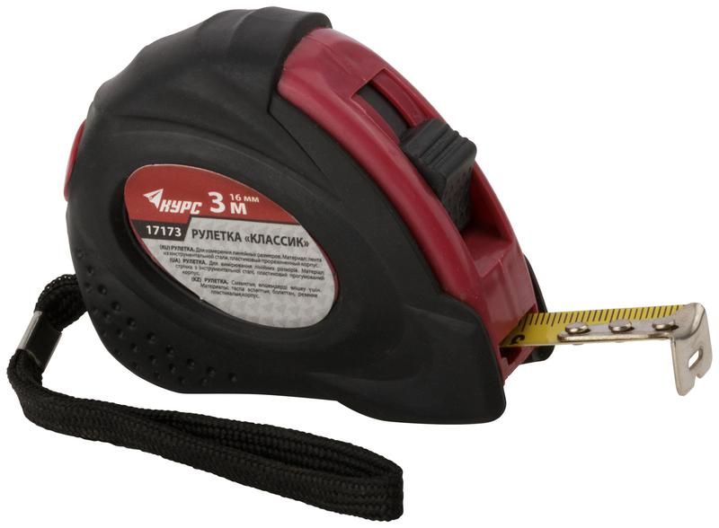Рулетка Классик 3мх16мм прорезиненный корпус КУРС 17173