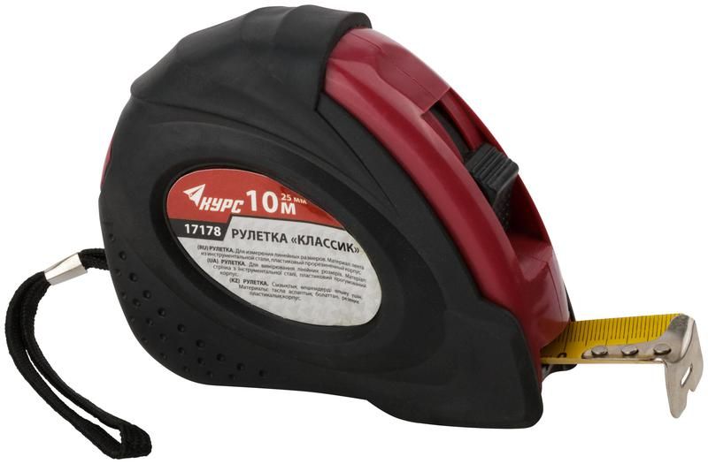 Рулетка Классик 10мх25мм прорезиненный корпус КУРС 17178