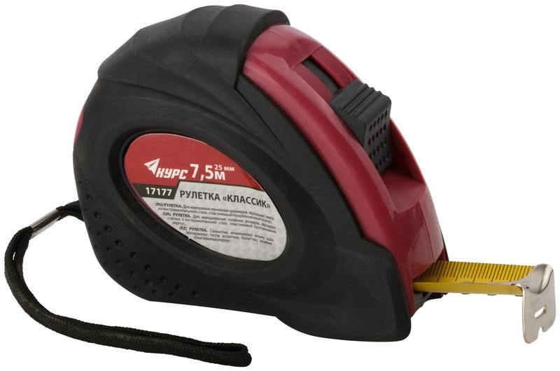 Рулетка Классик 7.5мх25мм прорезиненный корпус КУРС 17177