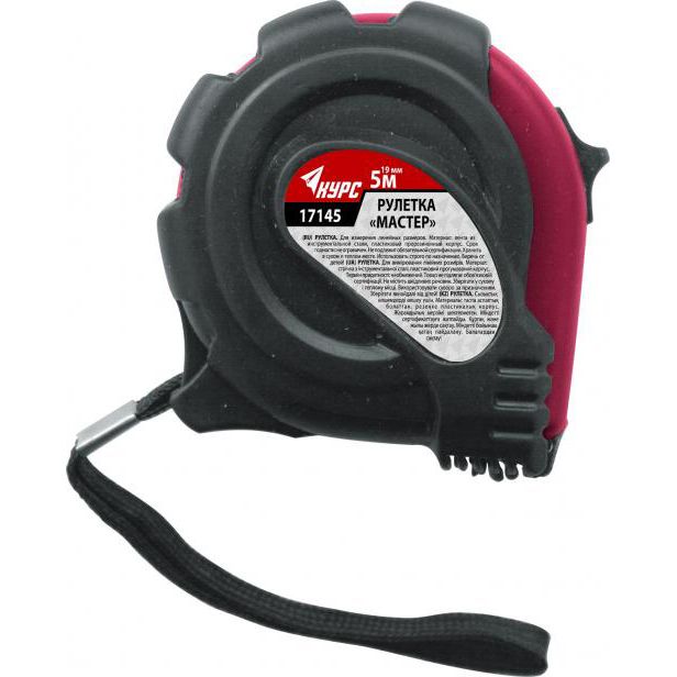 Рулетка измерительная 5м х 19мм от бренда КУРС (артикул 17145) - компактный и надёжный инструмент для точных замеров в строительстве, ремонте и монтажных работах. Прорезиненный корпус и стальная лента обеспечивают удобство и долговечность даже при ежедневном использовании.