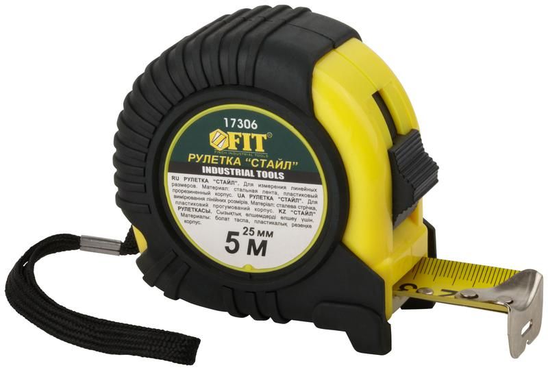 Рулетка Профи Стайл 5мх25мм прорезиненный корпус FIT 17306 РОС
