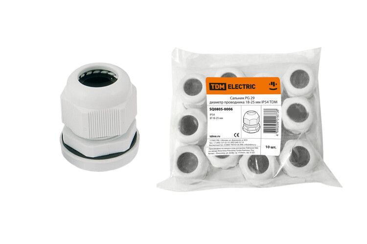 - Сальник PG 29 от TDM ELECTRIC (артикул sq0805-0006) выпускается в упаковке по 10 штук - рассчитывайте запас при крупных проектах