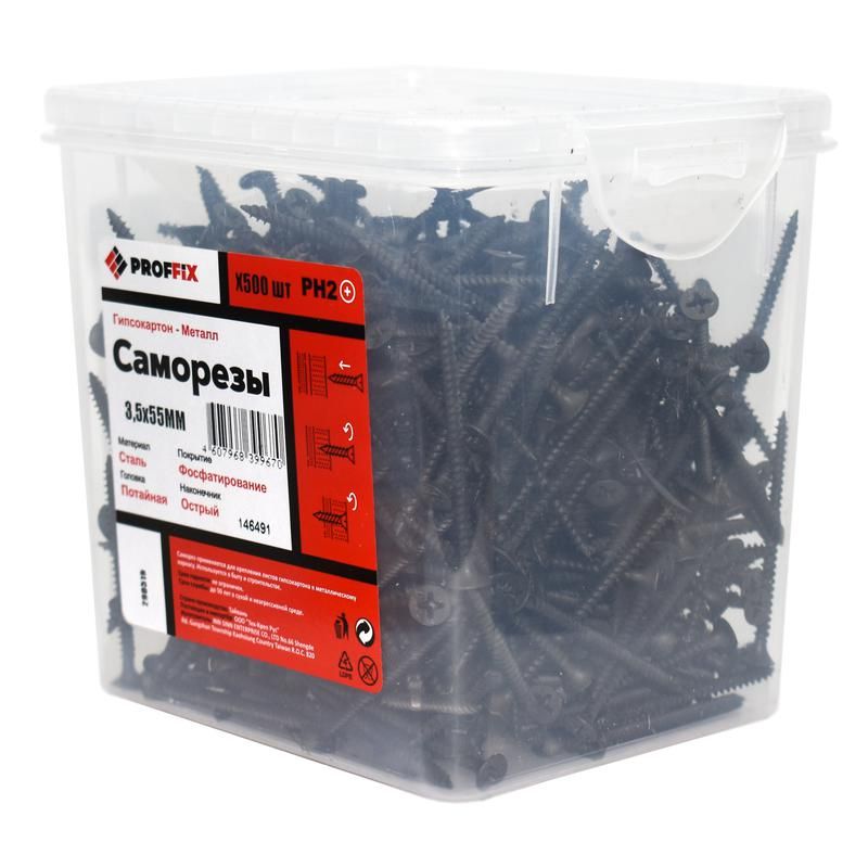 | Саморез СГМ 3,5х55 усиленный (TWN) (500 шт) - контейнер | 146491 | PROFFIX | 23.02.2026 | 9500 шт. | 1,44 ₽ | шт. | от 30 дней |