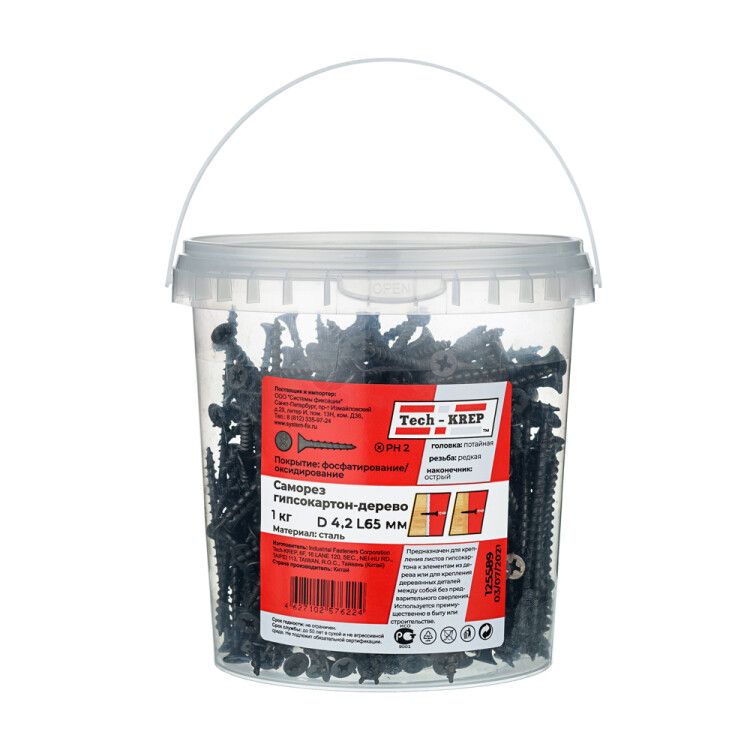 | Саморез ШСГД 4,2х65 редкая резьба (1кг) - ведро | 125589 | Tech-KREP | 24.02.2026 | 11 уп. | 593,05 ₽ | уп. | от 1 дня |
