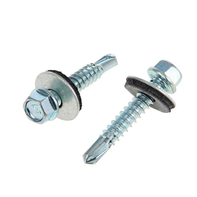 Эти саморезы используются для фиксации профнастила, металлочерепицы, сэндвич-панелей и других кровельных покрытий. Подходят для работы с деревянной обрешёткой и тонкими металлическими элементами - например, стальным уголком или профилем толщиной до 1,5 мм. Не требуют предварительного сверления благодаря буровому наконечнику. Часто применяются при устройстве крыш жилых домов, гаражей, ангаров и производственных зданий.