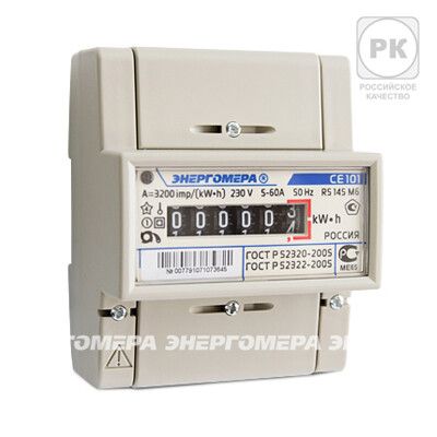 Счетчик электроэнергии однофазный однотарифный Энергомера CE101 R5 145 M6 5-60А МЕХ на DIN-рейку | 101001003007791