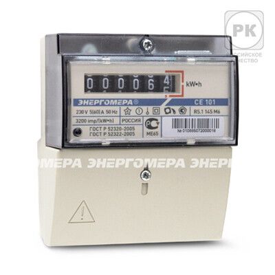 Счетчик электроэнергии однофазный однотарифный Энергомера CE101 R5.1 145 5-60А ЖКИ на DIN-рейку | 101001003011124 101001003013165