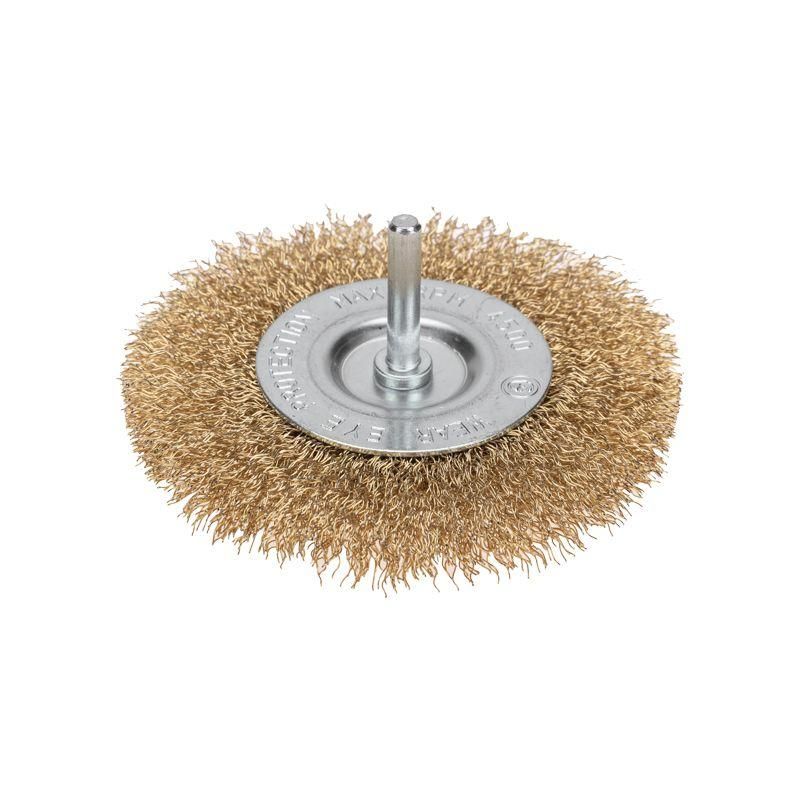Щетка дисковая для дрели, витая латунированная проволока, 100 мм устанавливается в патрон любой электродрели с цилиндрическим хвостовиком. Для надежной фиксации используйте ключевой патрон - не подходят быстрозажимные патроны с малым усилием зажима. Убедитесь, что максимальные обороты дрели не превышают 8000 об/мин - выше этого значения возможен перегрев и деформация щетины.
