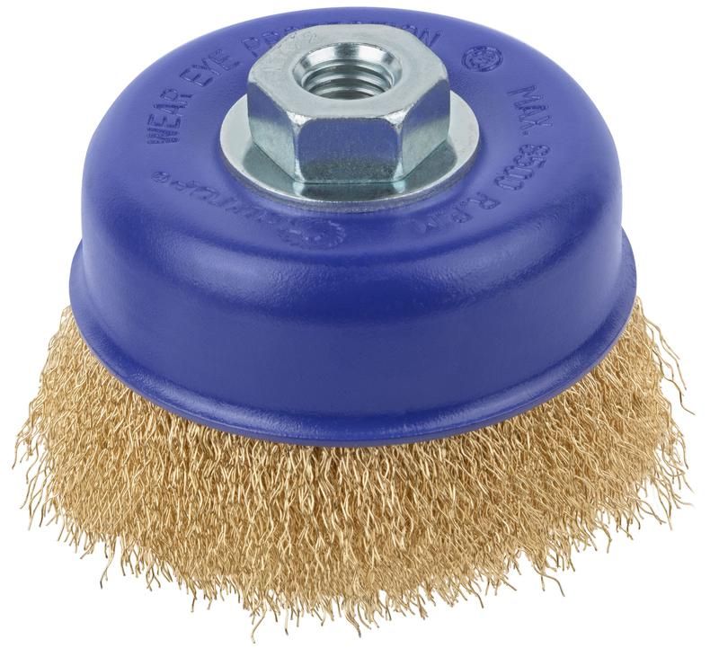 Щетка для УШМ, М14, Чашка, латунированная витая проволока 0,3 мм, 100 блистер, Profi - 82-895 РОС