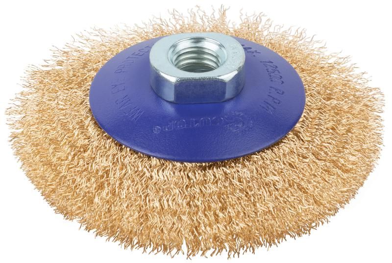 Щетка для УШМ, М14, Тарелка, латунированная витая проволока 0,3 мм, 100 блистер, Profi - 82-901 РОС